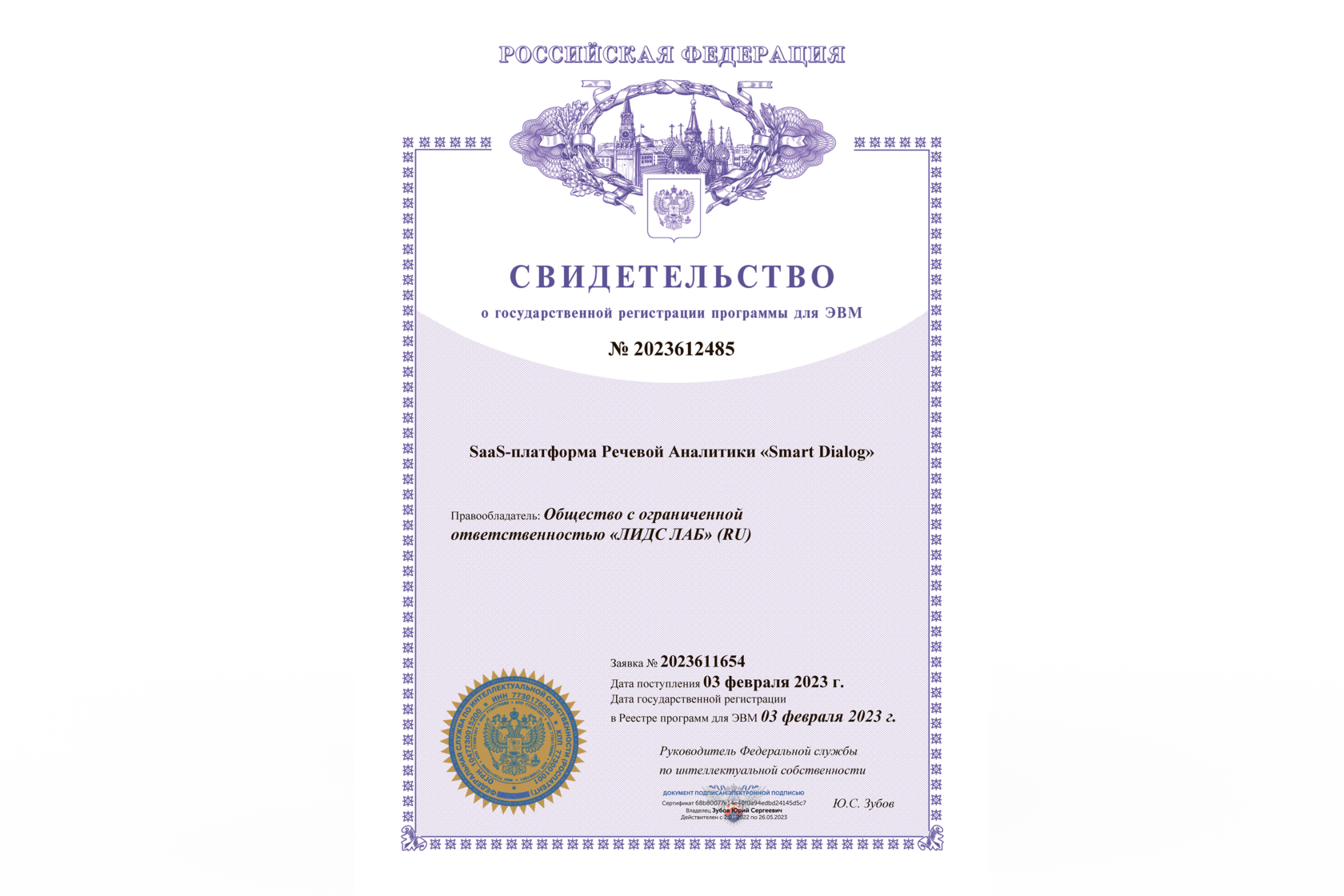 Правообладатель. Исключительное право на все программные продукты компании Лидс Лаб и принадлежащей ей торговой марки SMART DIALOG на территории всего мира и на весь срок действия исключительного права принадлежит Обществу с ограниченной ответственностью «Лидс Лаб»